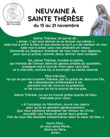 À l’occasion du Marathon de la prière, nous vous invitons à vivre une neuvaine à Sainte Thérèse de Lisieux, patronne des missions… et de notre marathon !